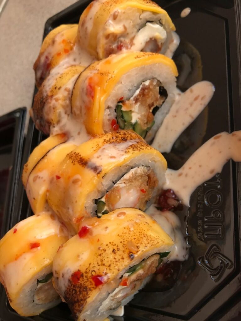 6. Sushi Rolls Topped With Melted Cheese
